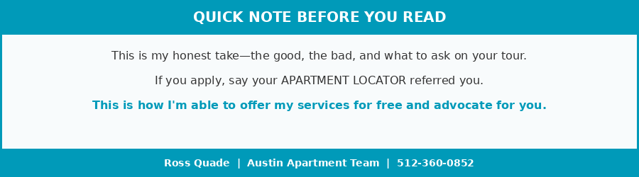 Ross Quade is the founder of Austin Apartment Team, providing apartment locating services to help renters find their ideal home across the Austin metro area. He and his team have toured 500+ properties and helped hundreds of renters navigate Austin’s competitive rental market—all at no cost to you. Fill out my short form online or text me and you’ll hear back within 5 minutes with personalized guidance from search to signed lease.